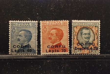 TERRE REDENTE - 1923, CORFU', non emessi, 3 valori (12/14).(GOMMA ORIGINALE)