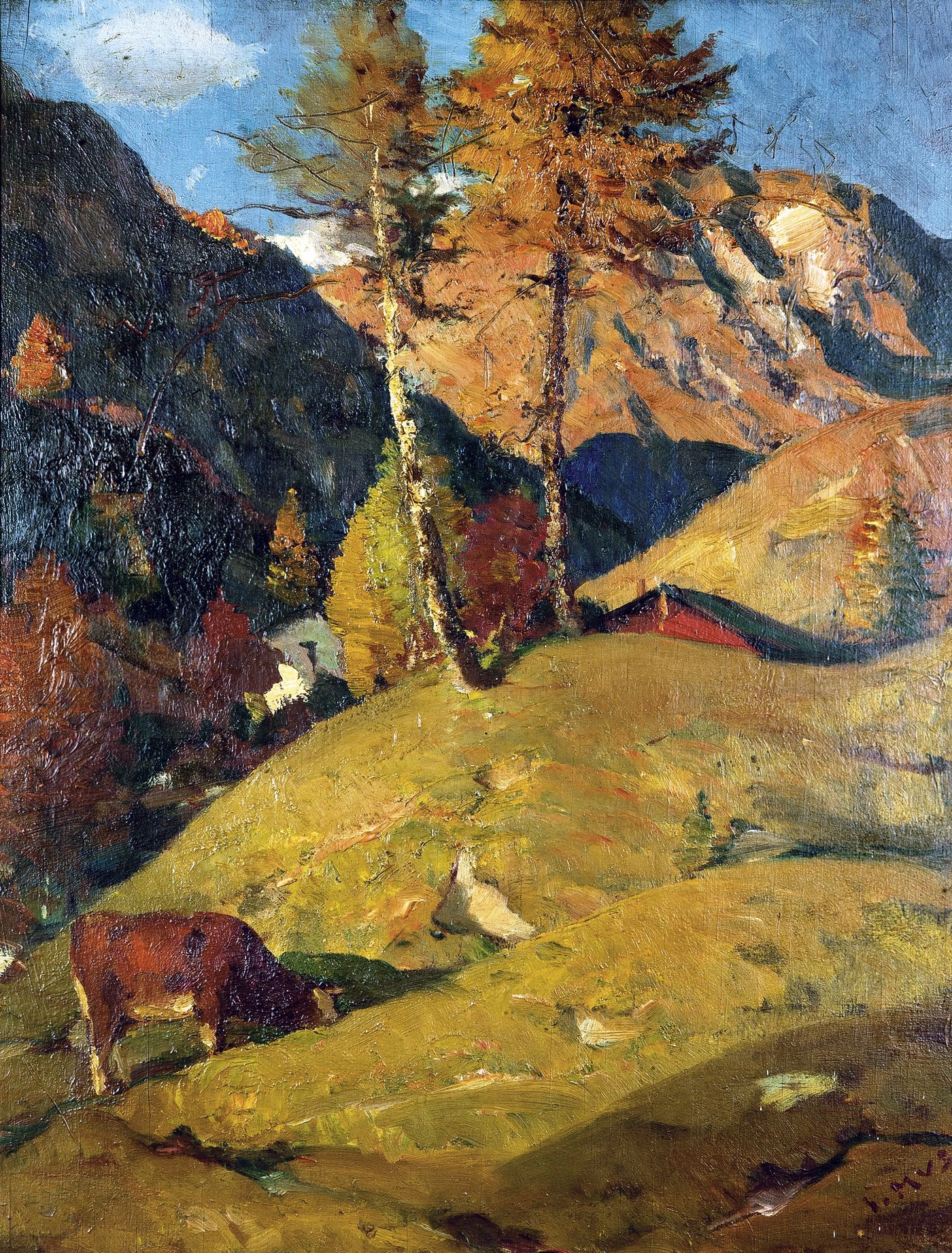 MUS ITALO (Chatillon (AO) 1892 - 1967 St.Vincent (AO)) - "Scorcio valdostano", 65x50 olio su tavola. Opera firmata in basso a destra