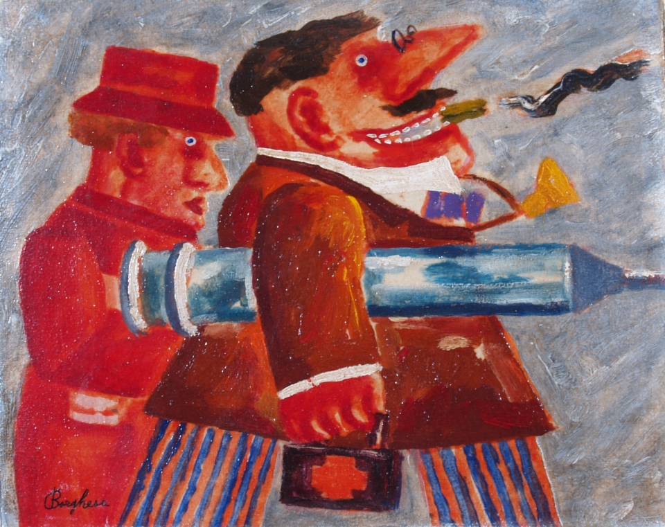 BORGHESE FRANZ (Roma 1941 - Roma 2005) "Medico e signorina" primi anni '90...