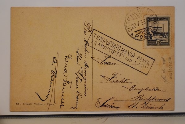 POSTA AEREA - 1933, VATICANO, cartolina per la Svizzera affrancata con 25 c. (3), inoltrata, anche se non richiesto, e pur non essendo affrancata in tale tariffa, per via aerea.(LETTERA)