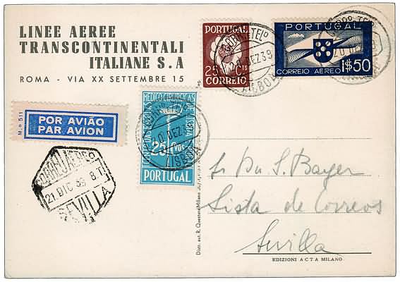 POSTA AEREA - 1939, PORTOGALLO, I Volo L.A.T.I. Lisbona - Siviglia, volo di...