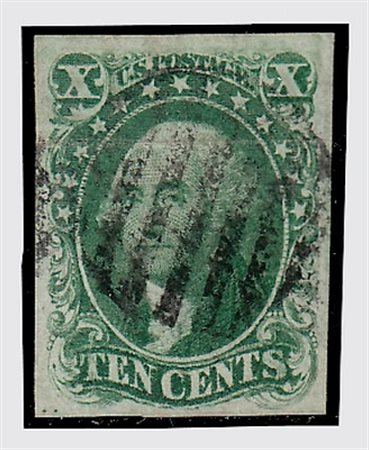 STATI UNITI - 1855, Washington, 10 c.verde (7). (Cert.Terrachini).(USATO)