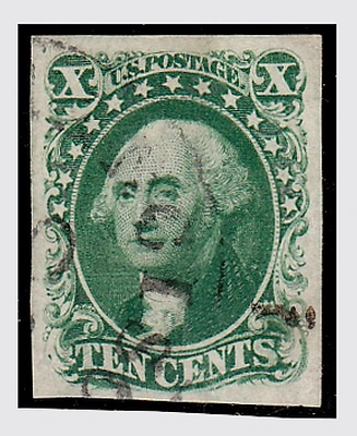 STATI UNITI - 1855, Washington, 10 c.verde (7). (Cert.Terrachini).(USATO)