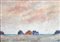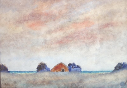 "Baracca rosa a Torvaianica" 1969 Olio su cartone telato cm. H: 36 L: 51 Firma in basso a sinistra. Titolo, anno e firma al retro dell'opera. Etichette al retro: Galleria Scardigli (Montecatini Terme), Arte Studio Borrelli (Pompei). Verbale di perizia su foto di Galleria Pace (Mi) redatto e firmato da Gimmi Stefanini, Perito d'Arte del Tribunale di Milano C.T.U..