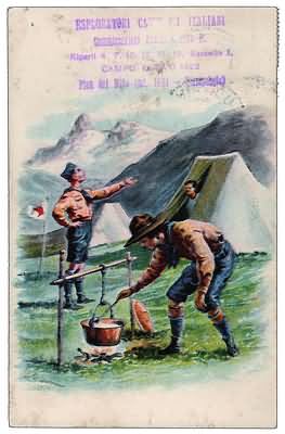CARTOLINE - 1922, SCOUT, cartolina a tema spedita dal Campo estivo di Pian del Nido, Piampaludo (prov. Genova). Non comune.(LETTERA)