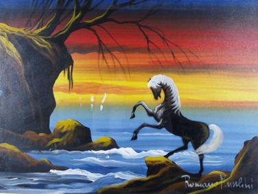 MUSSOLINI ROMANO (Forlì 1927 - Roma 2006) "Cavallo rampante su mare" Olio su...