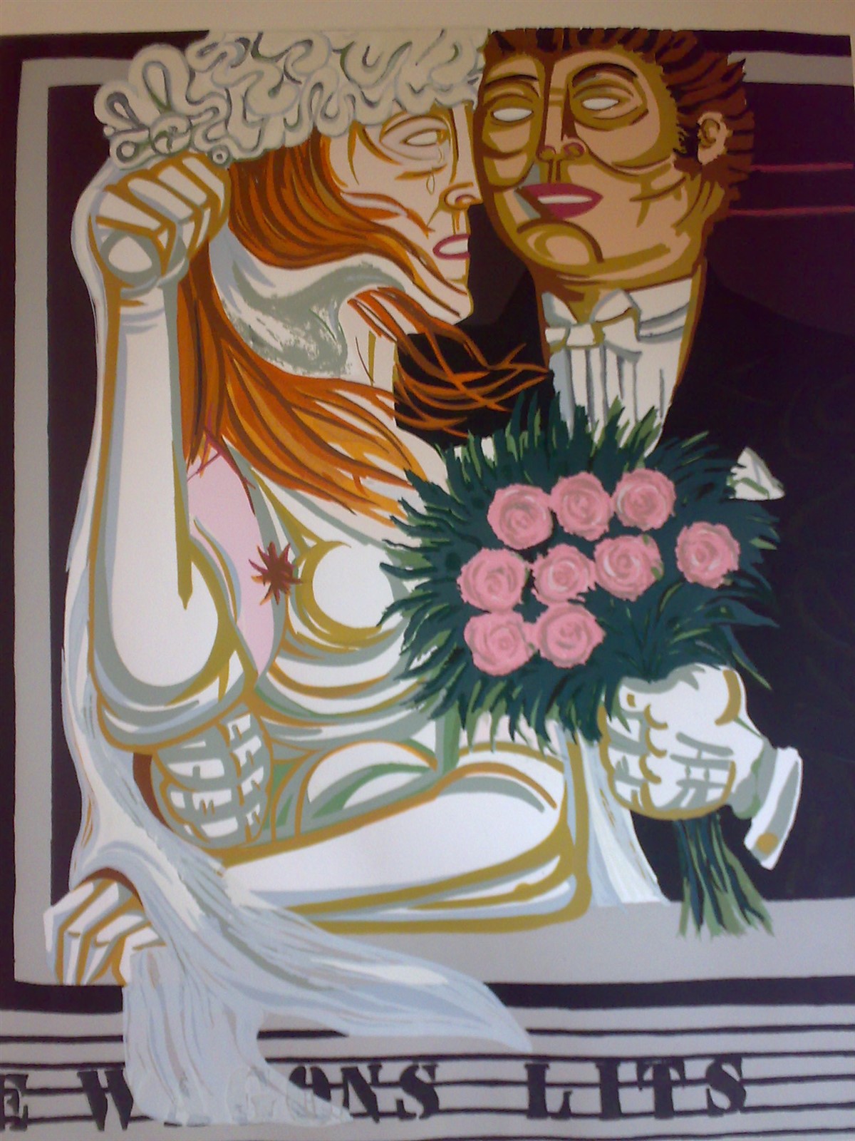 MIGNECO GIUSEPPE (1908 - 1997) Viaggio di nozze. Serigrafia materica. Cm 60,00 x 75,00. P.d.a.
