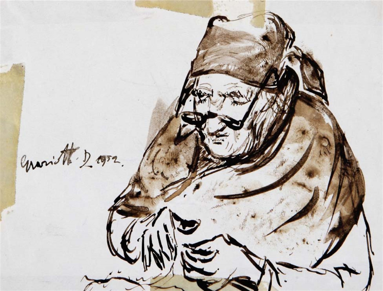 Lot 437 | GRAZIOTTI DANTE (XX SEC.) Donna che cuce. 1952. China su carta. Cm 15,00 x...