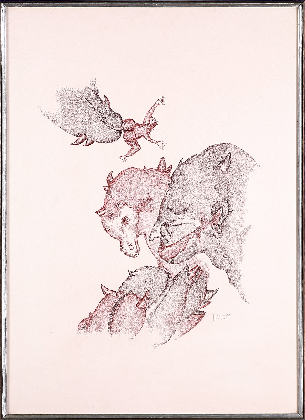 CRAGNOLINI TONINO (n. 1937) Senza titolo. 1974. Tecnica mista su carta. Cm...