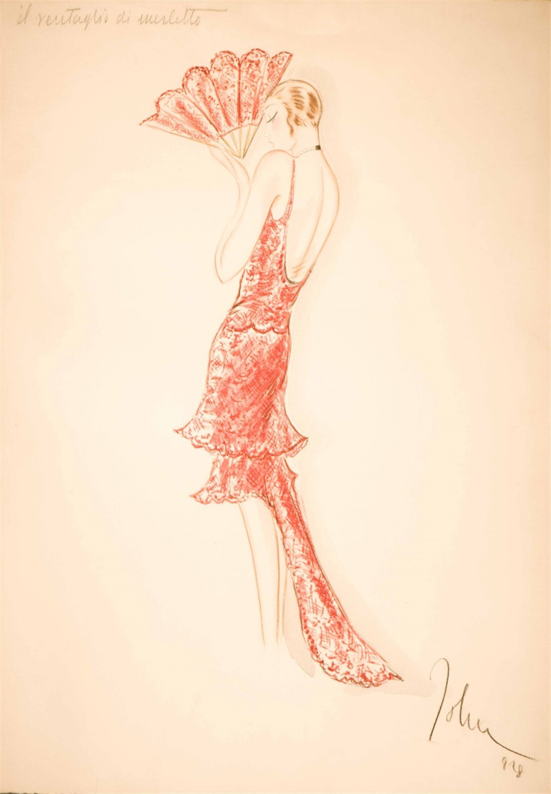 JOHN Il ventaglio di merletto. 1928. Pastelli su carta. Cm 50,00 x 71,00.