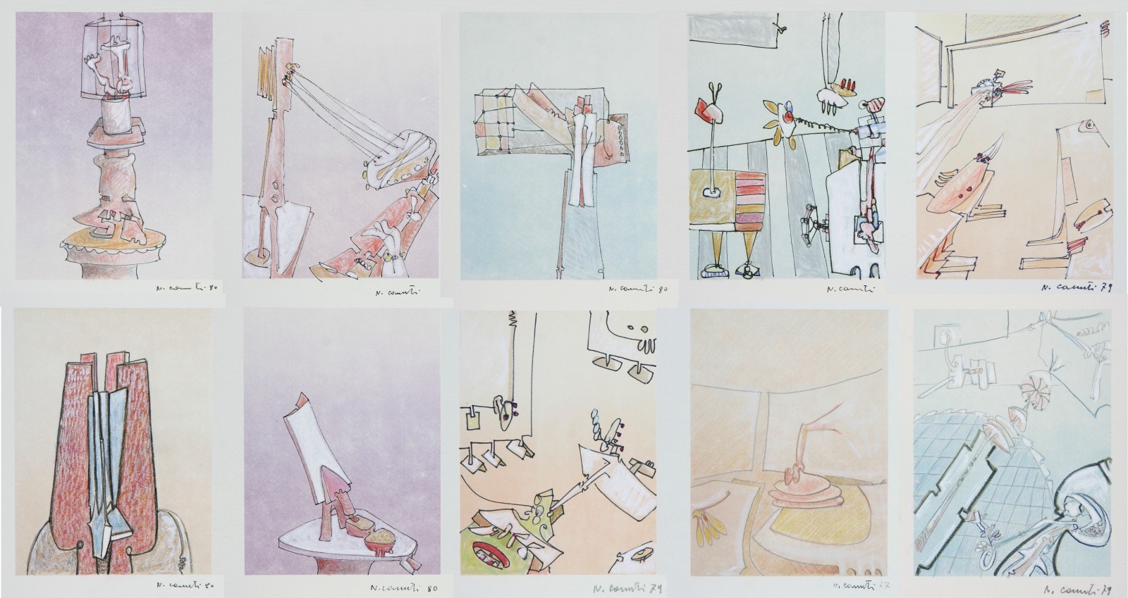 CANUTI NADO (n. 1929) Senza titolo. tecniche miste su carta. Cm 13,00 x 17,50. Serie di n. 10 tempere.