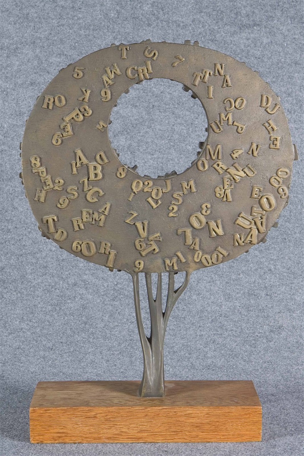 BECHERONI ELVIO (n. 1934) L'albero degli enigmi. Bronzo. Cm 48,00 x 34,00. Firmato sul fusto.