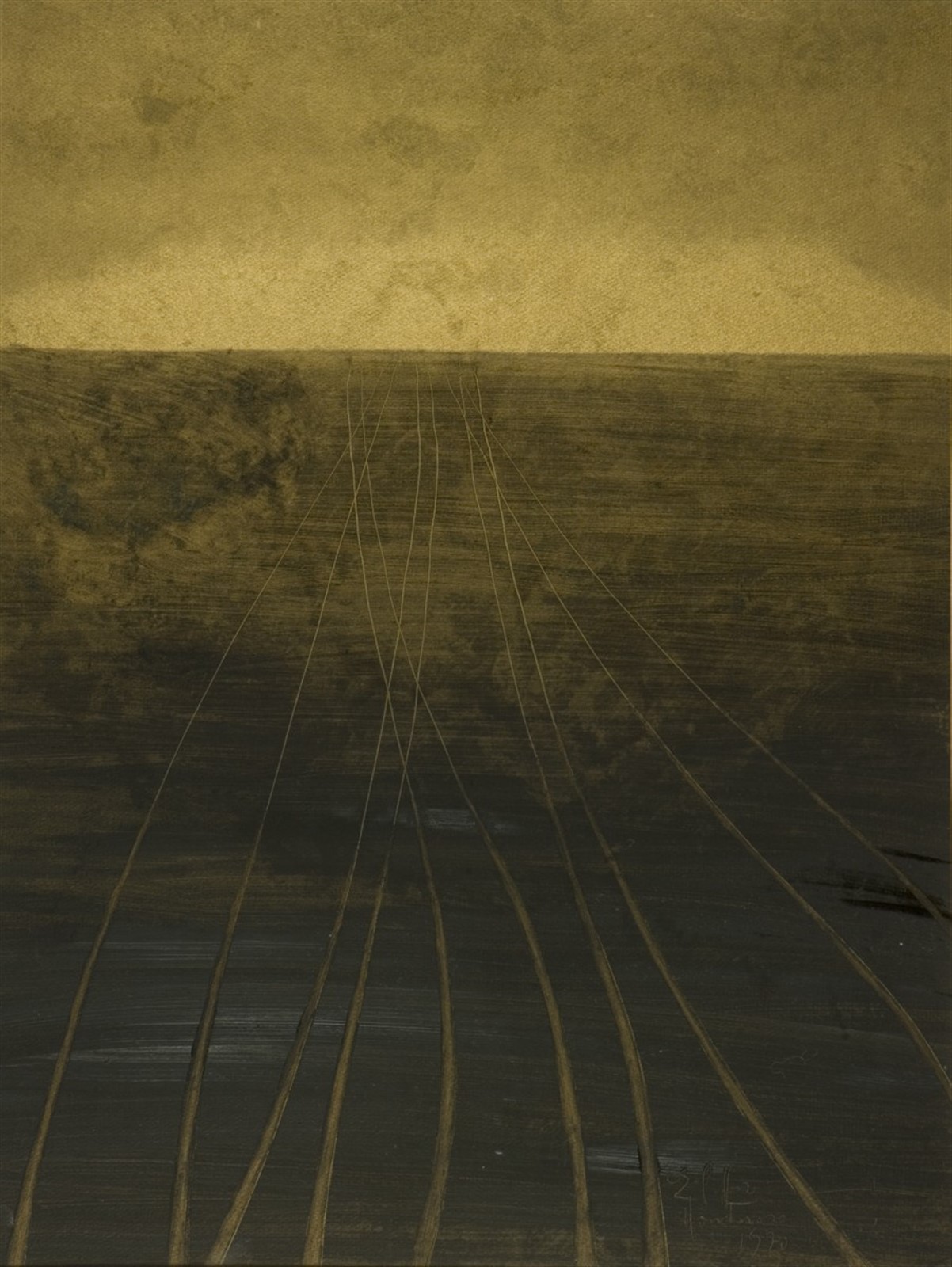 CUFFARO ERSILIA Convergenze. Olio su tavola. Cm 62,00 x 47,00. 1970
