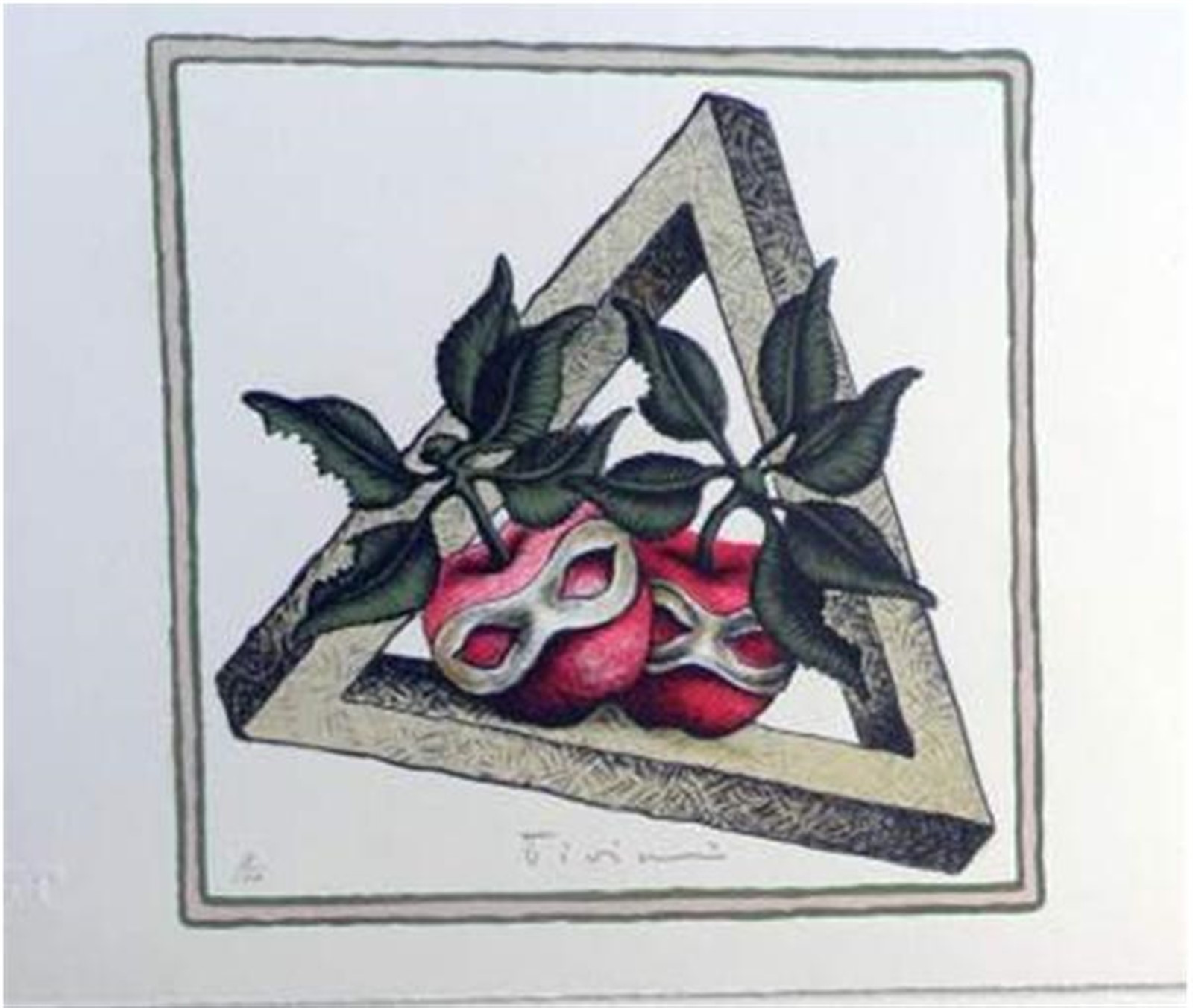 VIVIANI VANNI (1937 - 2002) Nel triangolo impossibile. 1981. Litografia. Cm 32,00 x 24,00. XXI/L. Tiratura e firma in basso. Pubblicata sul Catalogo generale Vanni Viviani - Opera grafica 1962 - 1995, Edizioni Gabinetto dei Disegni e delle Stampe, 1995.