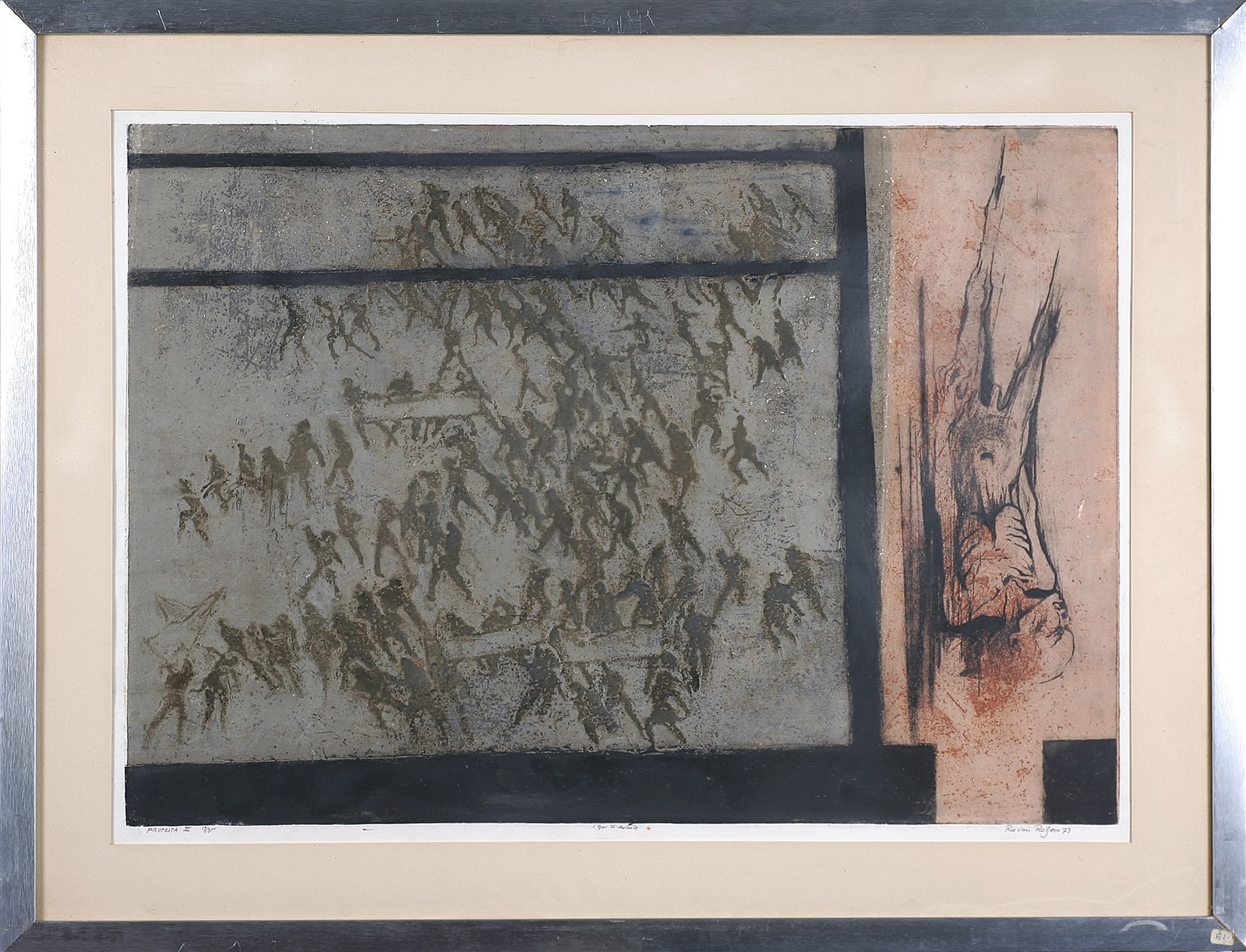 VAN ROSSEM RU (1924 - 2007) Protlita 2. 1973. Acquaforte. Cm 70,00 x 50,00. 17/35. Tiratura titolo e firma in basso a matita. Cornice presente