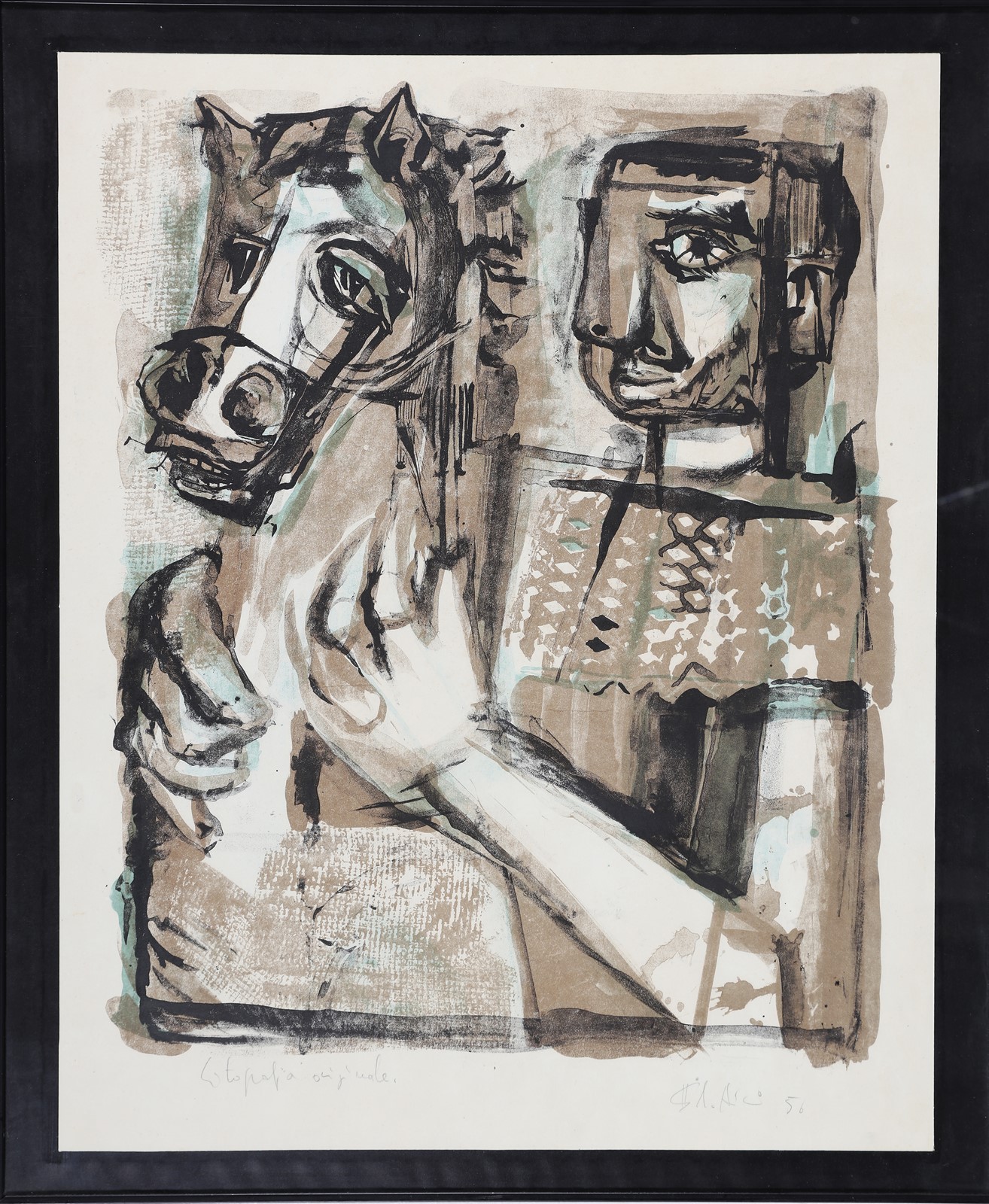 SCHETTINI URLICO (n. 1932) Cavaliere. Litografia. Cm 40,00 x 60,00.