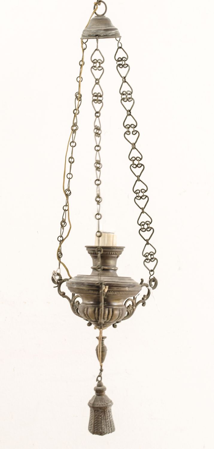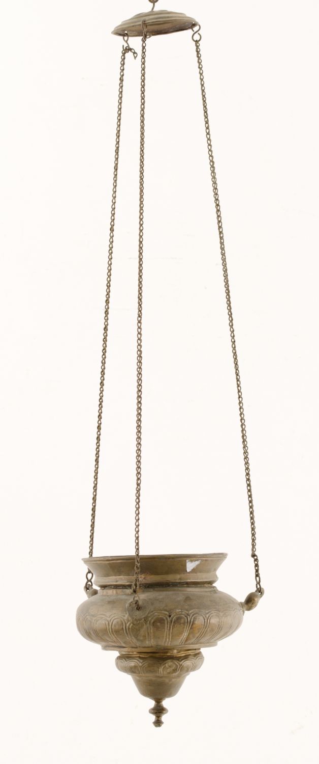 DUE LAMPADE votive in metallo. Sicilia XIX secolo Misure: h cm 70