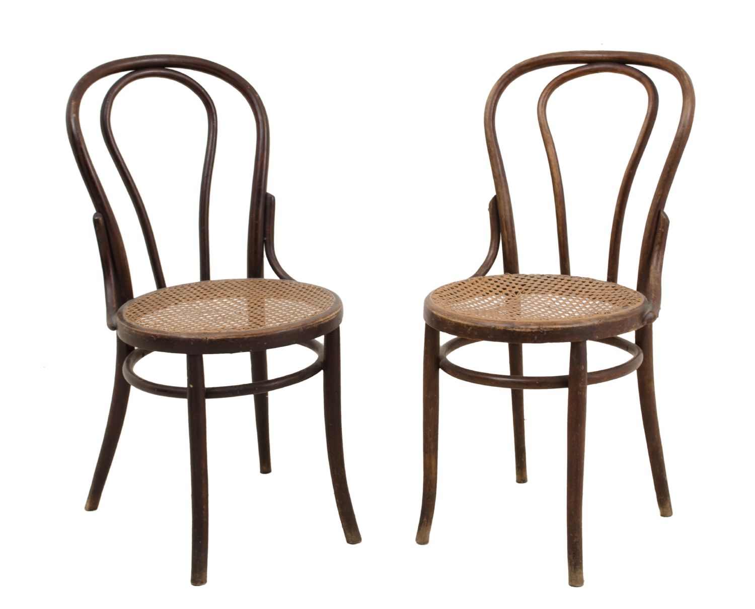COPPIA SEDIE stile Thonet in faggio curvato a fuoco con seduta in finocchino (seduta h cm 45). Sicilia XIX secolo Misure: h cm 88