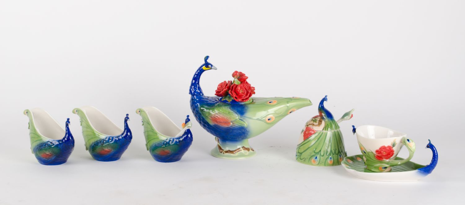 LOTTO composto da THEIERA, 3 LATTIERE, ZUCCHERIERA e da TAZZINA con piattino in porcellana decorata. XX secolo Misure: varie