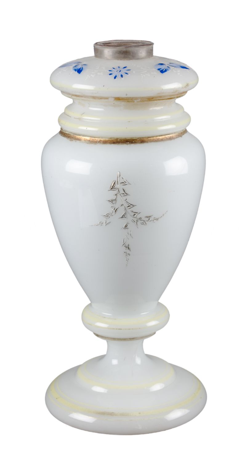 LUME in opaline decorata a motivo floreale (difetti) (boccia e tubo mancante). Sicilia XIX secolo Misure: h cm 40