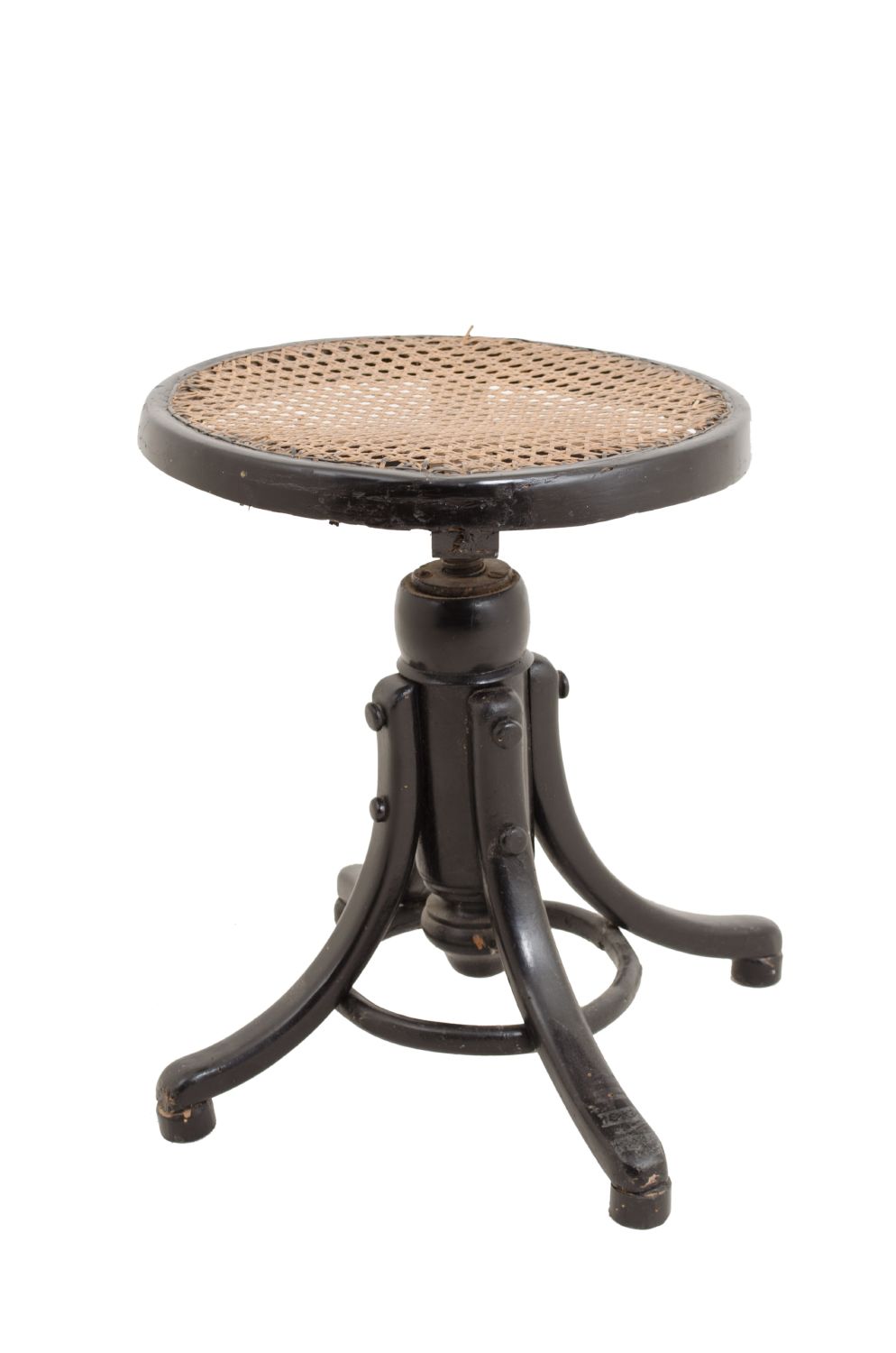 SGABELLO da pianoforte in legno ebanizzato con seduta in finocchino. Primi...