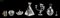 COLLEZIONE composta da piccolo CANDELABRO a 4 fiamme, FIORE in cristallo Lalique, 2 BOTTIGLIE portaprofumi, COFANETTO in vetro, piccolo BICCHIERE in vetro inciso e metallo e da piccola BOTTIGLIA porta profumo decorata. XX secolo Misure: varie