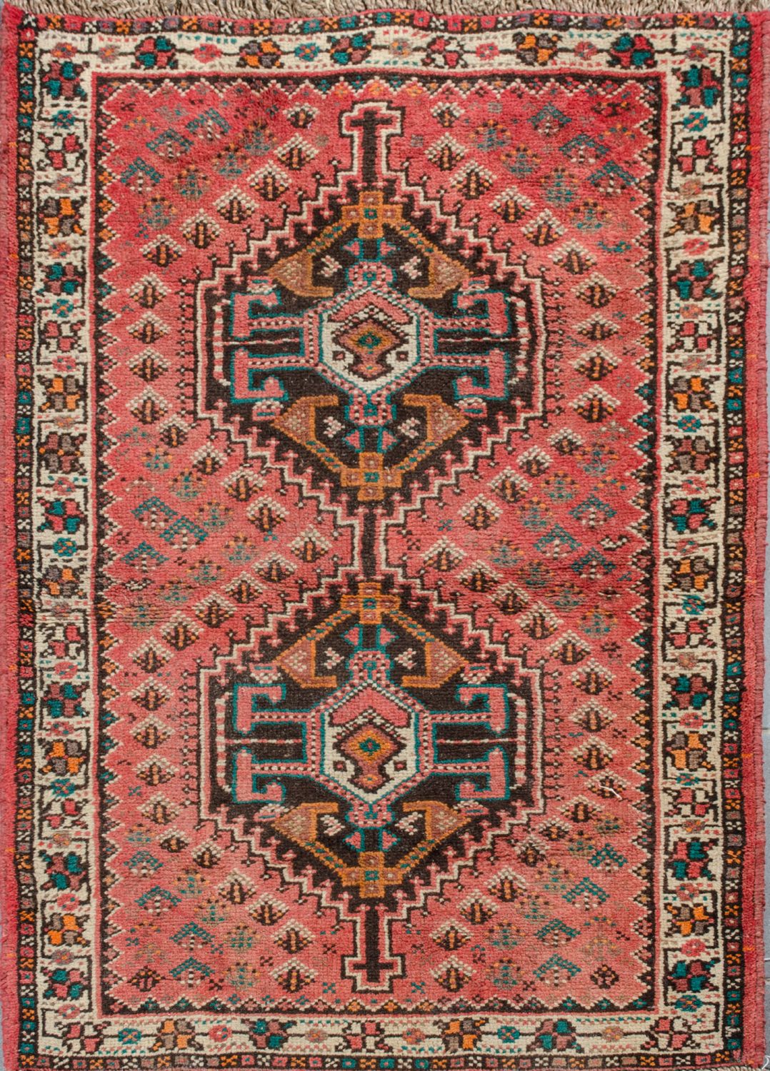 TAPPETO Shiraz, trama e ordito in cotone, vello in lana. Persia XX secolo Misure: cm 128 x 80