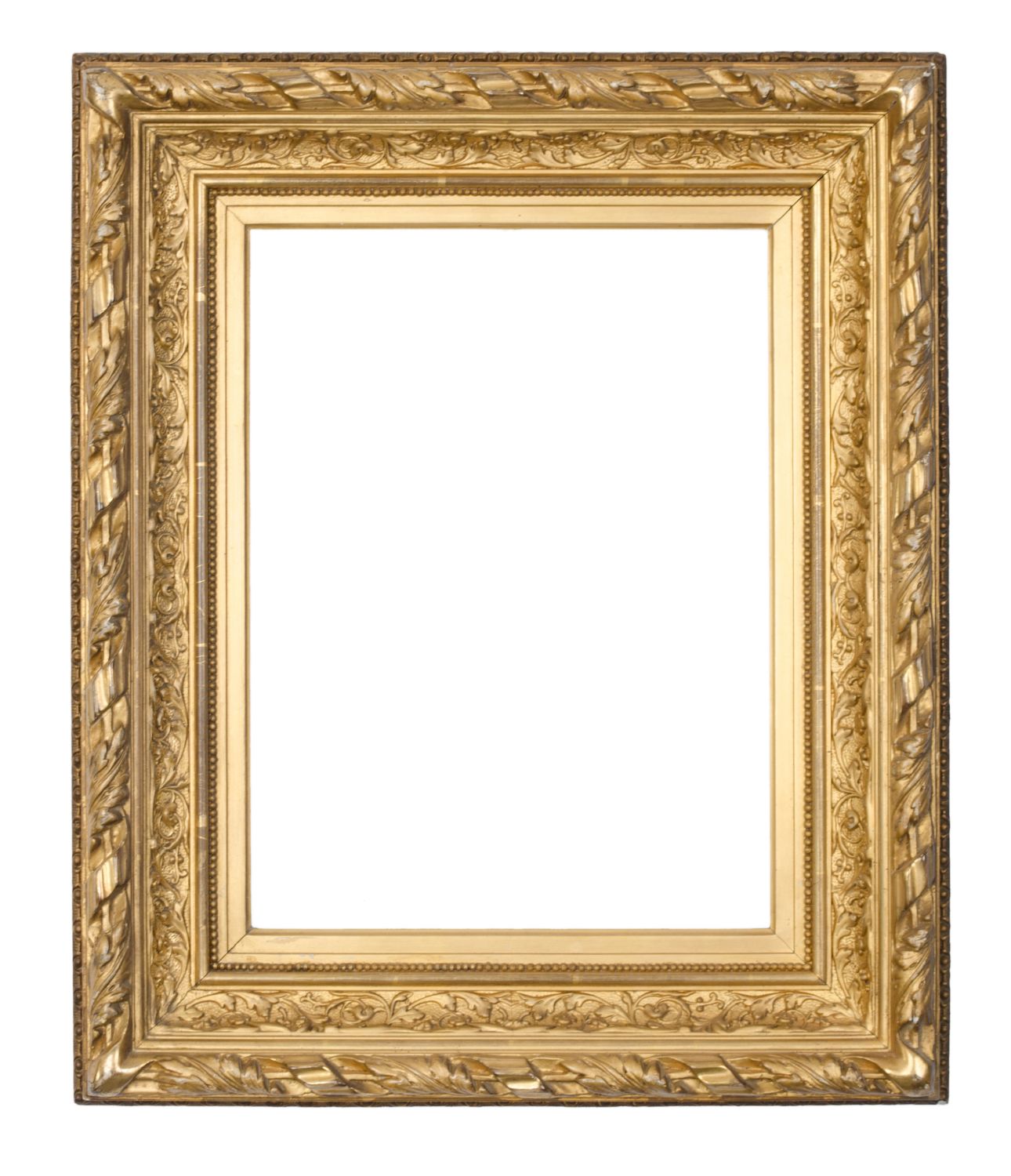 CORNICE in legno e pastiglia dorata (cm 25 x 33). Italia fine '800 Misure: cm 39 x 47