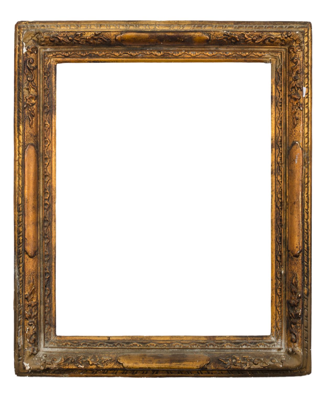 CORNICE in legno e pastiglia dorata (cm 41 x 51). Francia XX secolo Misure: cm 53 x 63