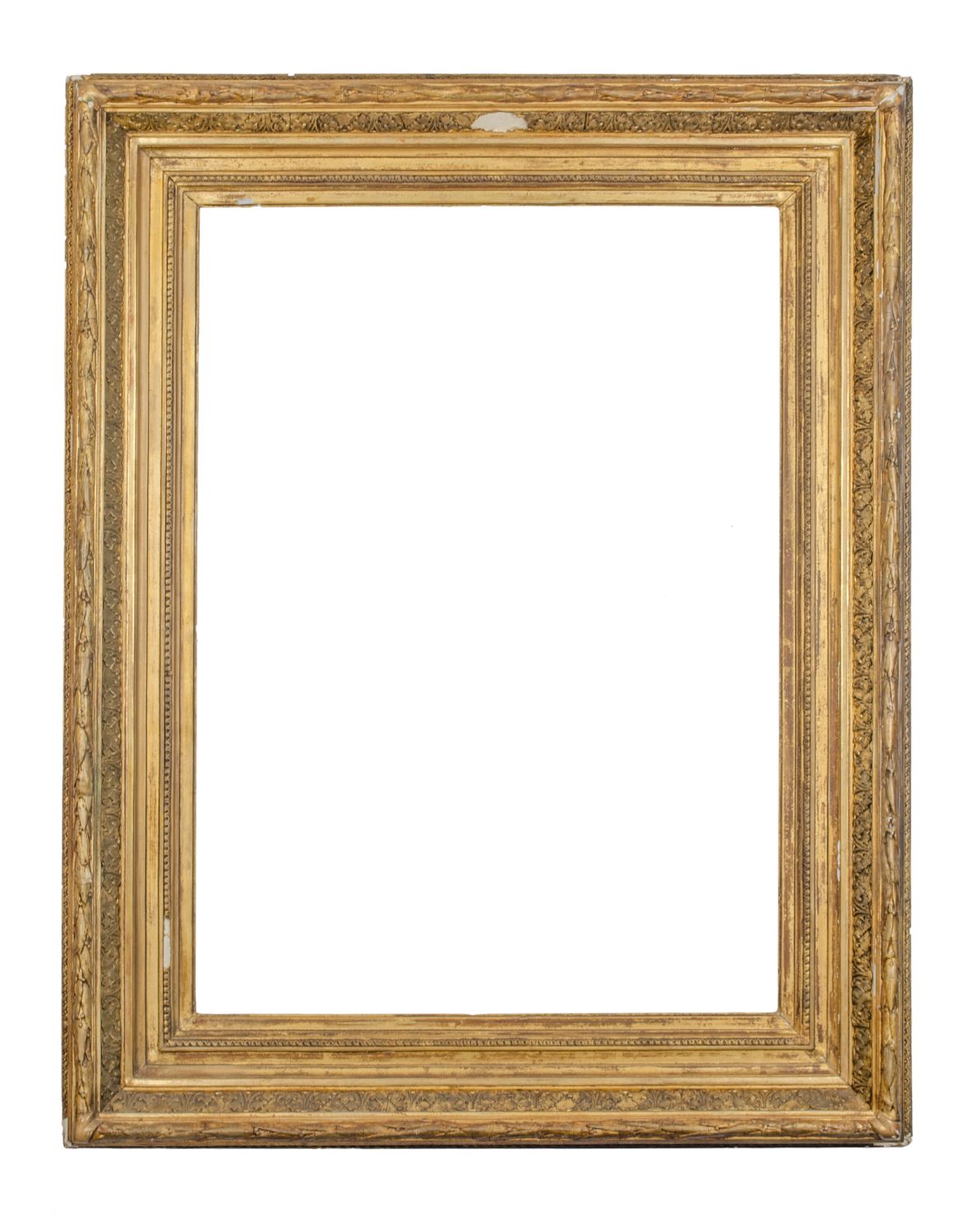 CORNICE in legno e pastiglia dorata (cm 60,5 x 82) Francia XIX secolo Misure: cm 107 x 84