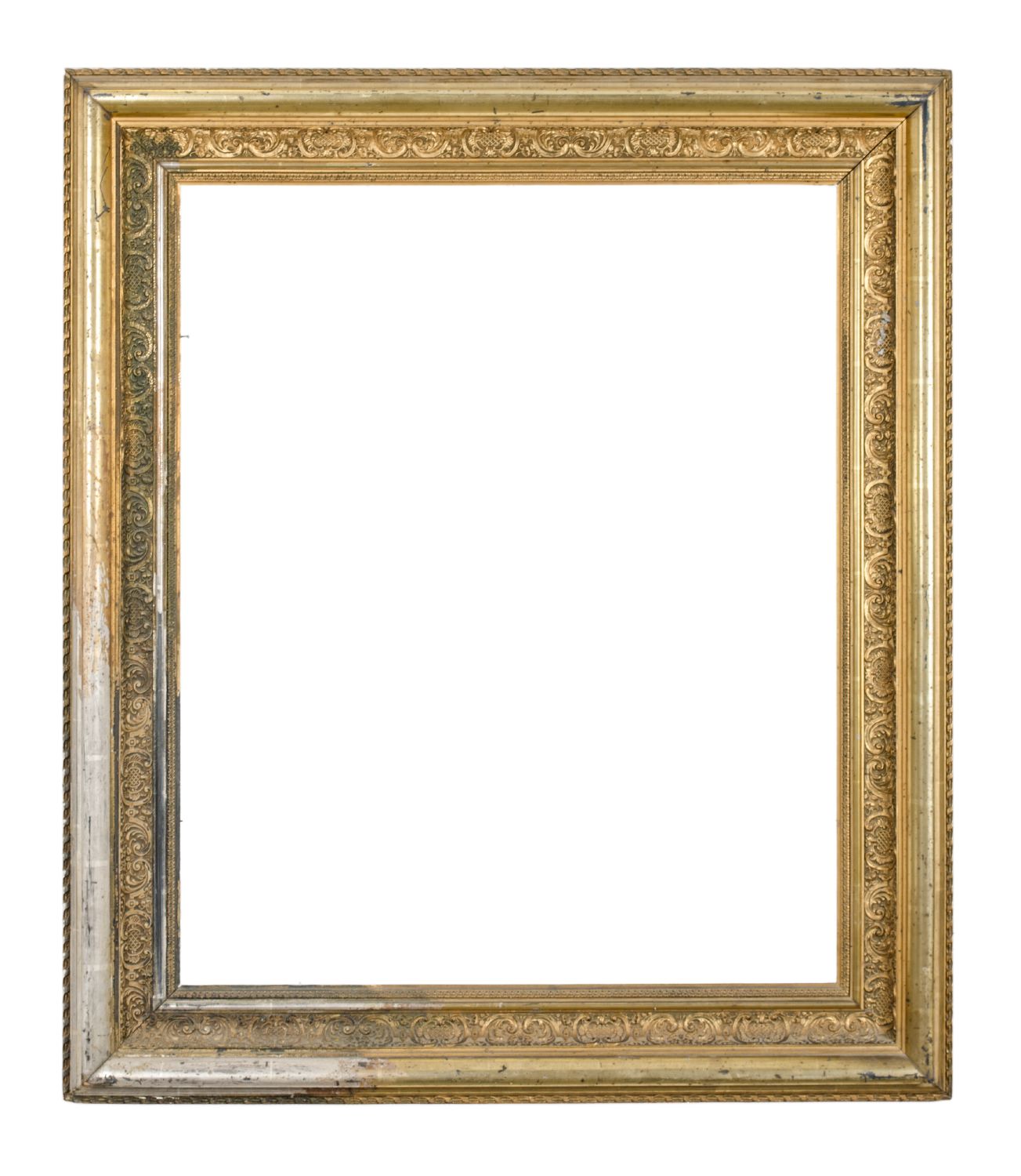CORNICE in legno e pastiglia dorata ed argentata (cm 57 x 69). Italia primi '900 Misure: cm 74 x 87