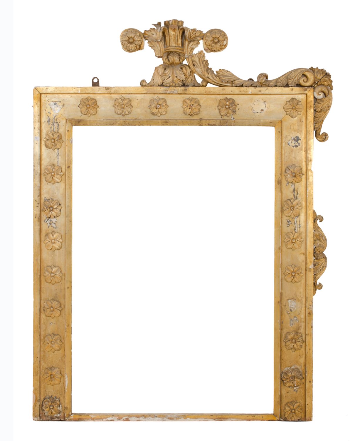 CORNICE Luigi XVI in legno dorato ad argento a mecca. Sicilia fine '700 Misure: cm 134 x 177