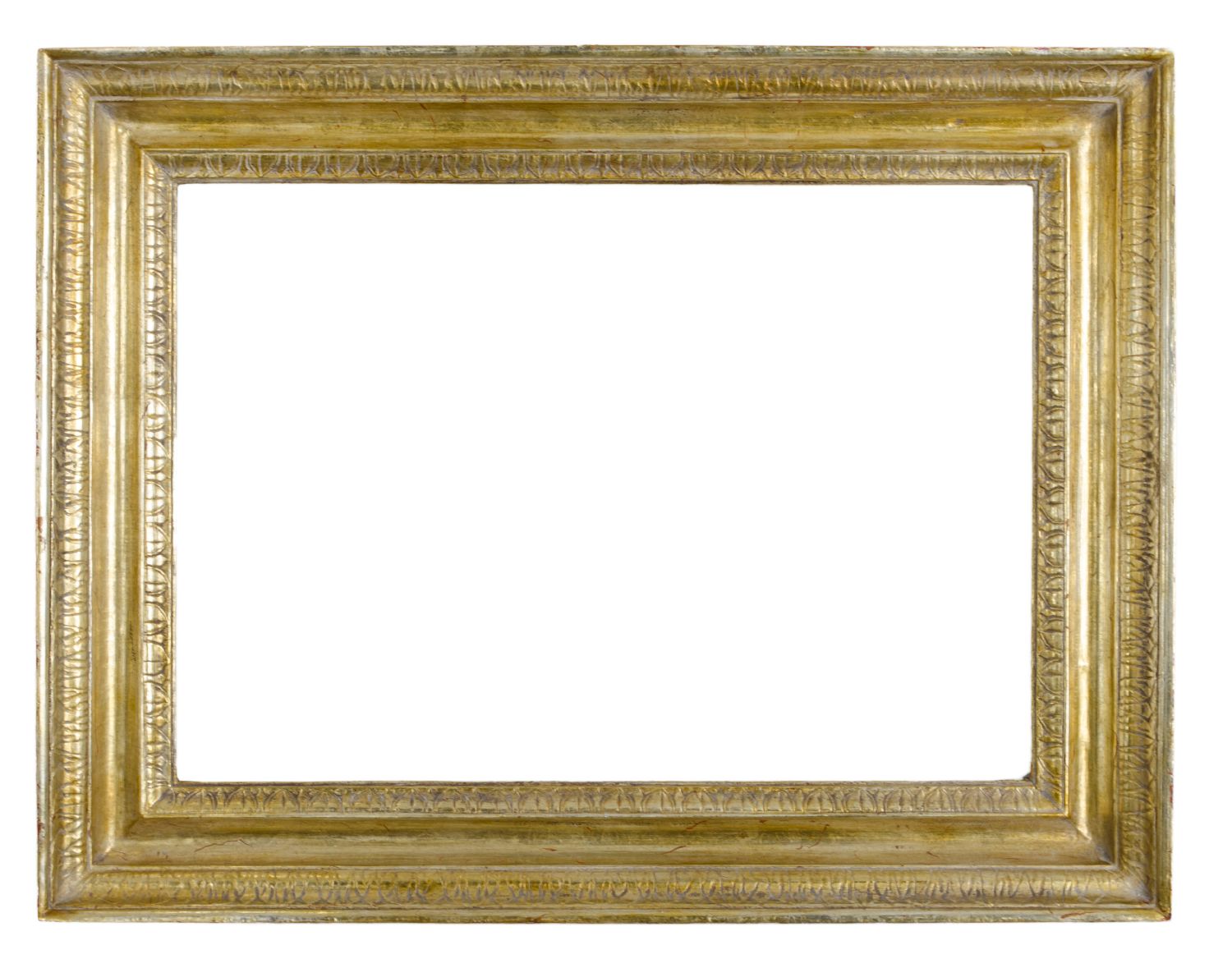 CORNICE stile Impero in legno dorato ad argento a mecca (cm 56 x 40). Sicilia XX secolo Misure: cm 71 x 54