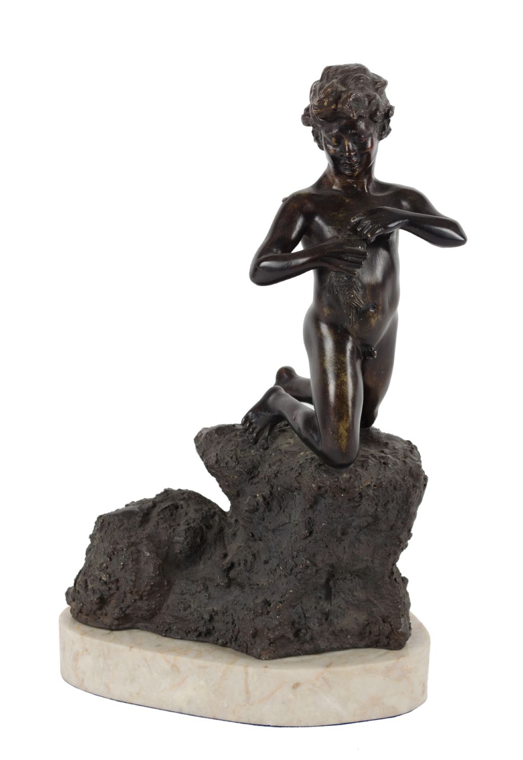 VINCENZO CINQUE (Napoli 1852 - 1929) SCULTURA in bronzo , fusione a cera persa raffigurante "pescatore su scoglio", base in marmo. Misure: h cm 33