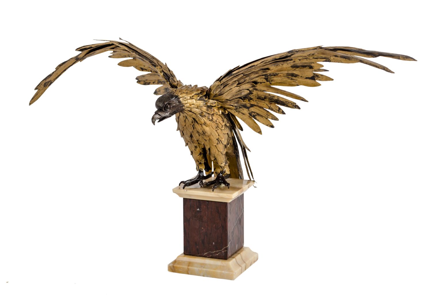 Lot 233 | SCULTURA in bronzo dorato e brunito raffigurante "rapace" con base in marmo....