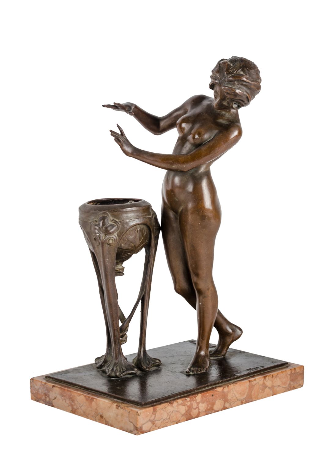 ANTONIO UGO (Palermo 1870 - Palermo 1950) SCULTURA in bronzo, fusione a cera persa raffigurante "nudo femminile con braciere" (fonferia Lagana'), base in marmo rosso di Verona. Misure: h cm 34