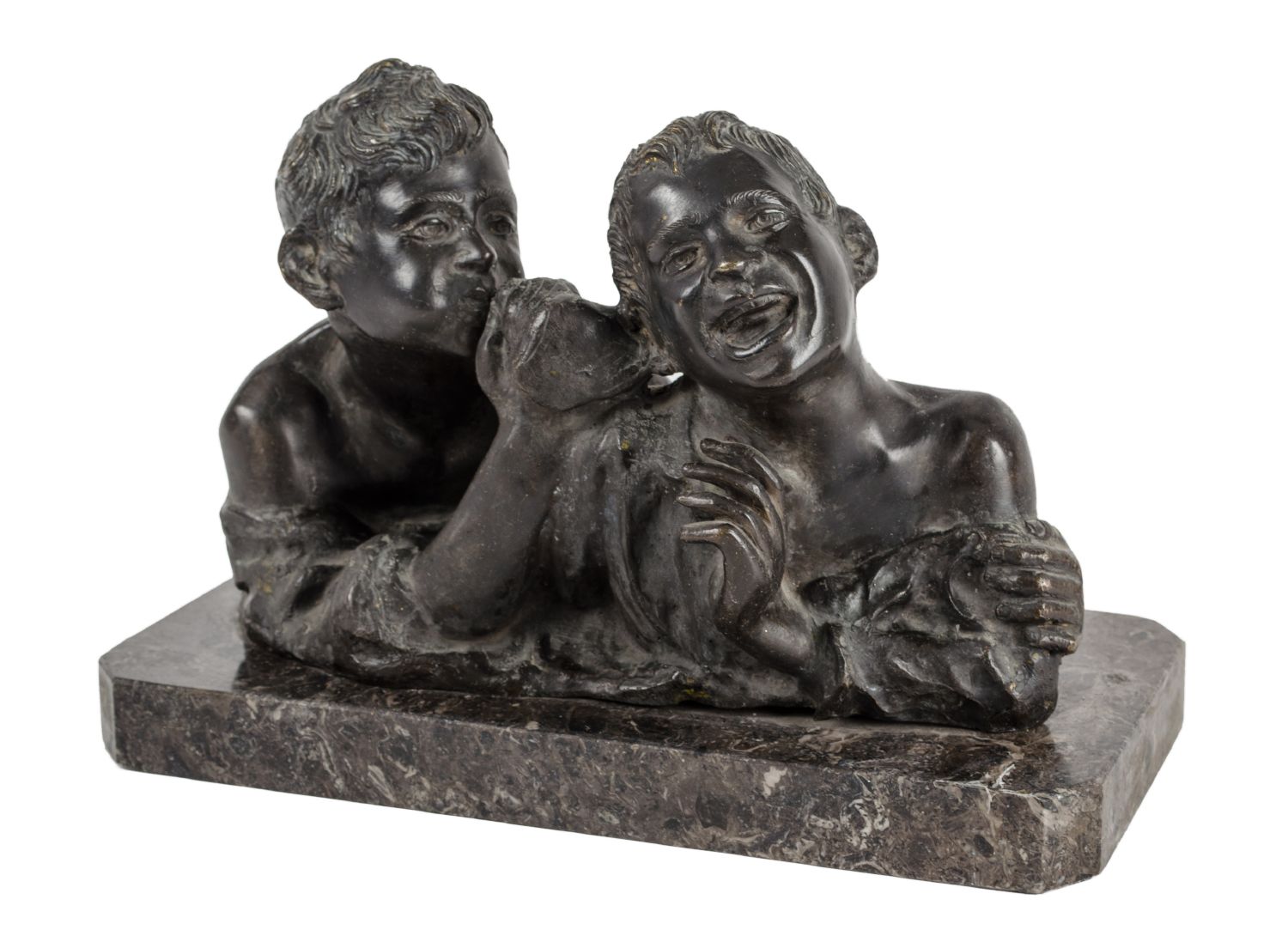 AURICCHIO SCULTURA in bronzo raffigurante "scugnizzi". XX secolo Misure: cm 34 x 18 x h 23