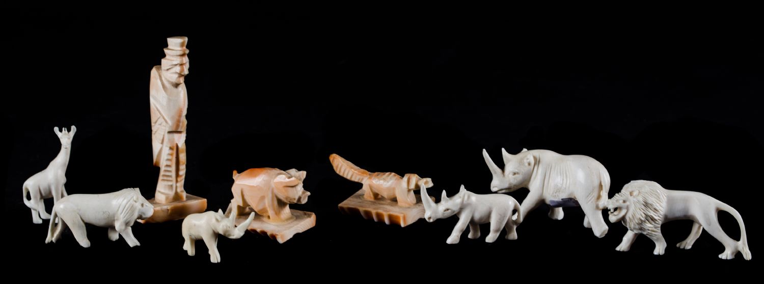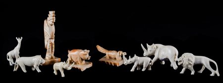 LOTTO composto da sei SCULTURINE in avorio raffiguranti "soggetti orientali" e da tre SCULTURINE in ossi raffiguranti "personaggi". Primi '900 Misure: varie