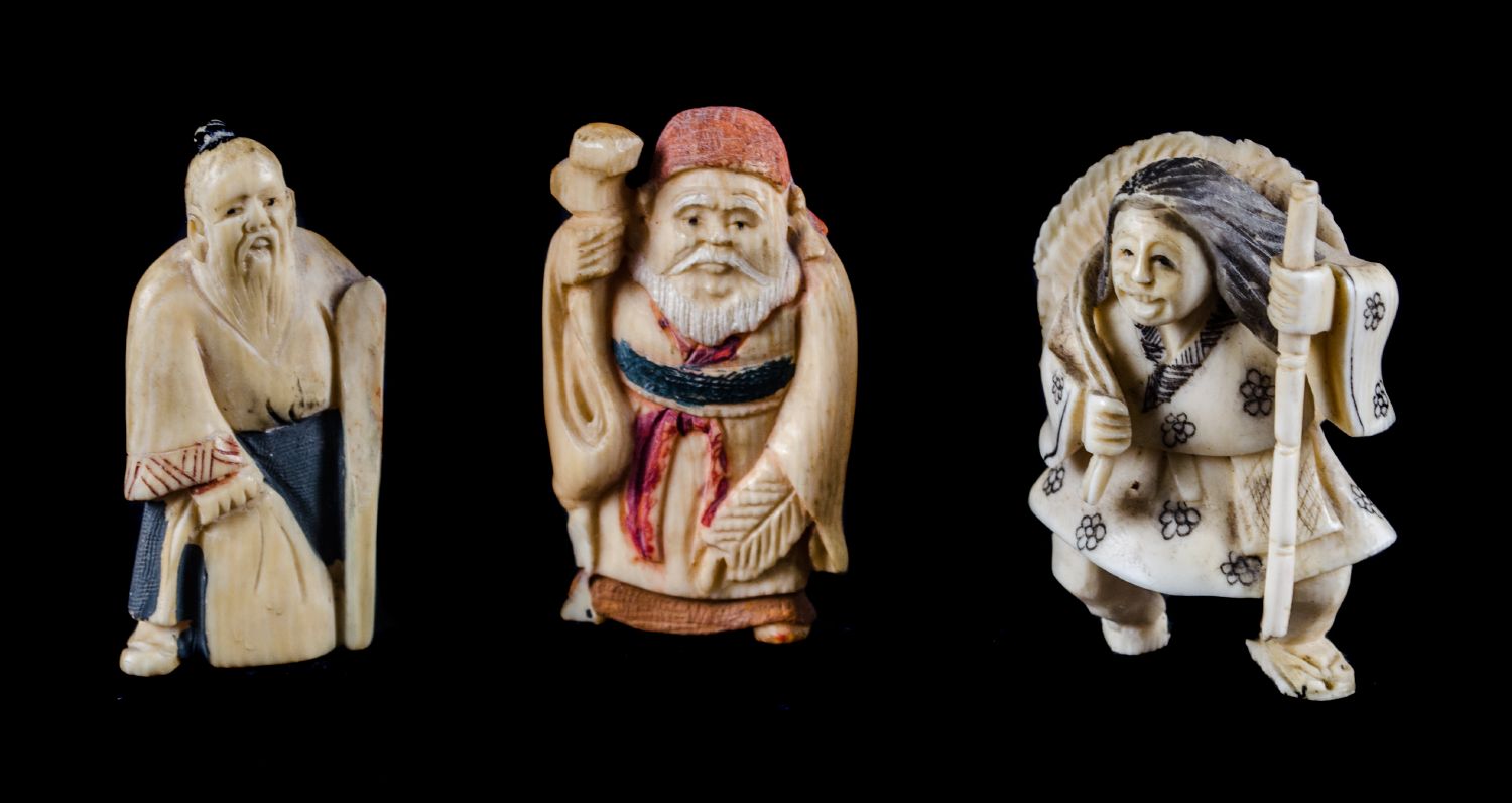 TRE NETZUKE' in avorio. Cina XX secolo Misure: h cm 5