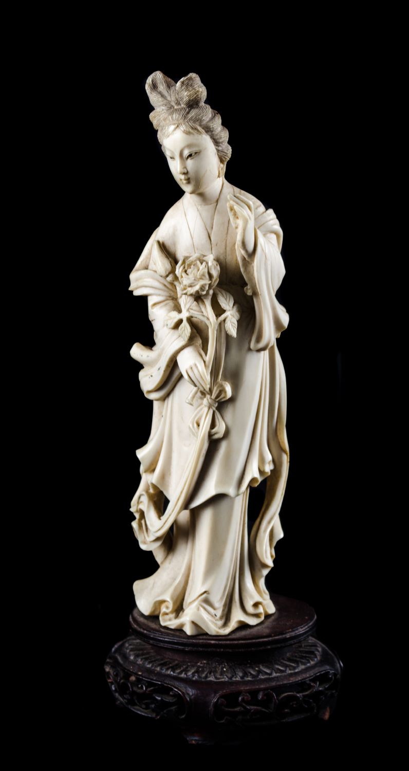 SCULTURA in avorio raffigurante "geisha". Fine '800 Misure: h cm 21