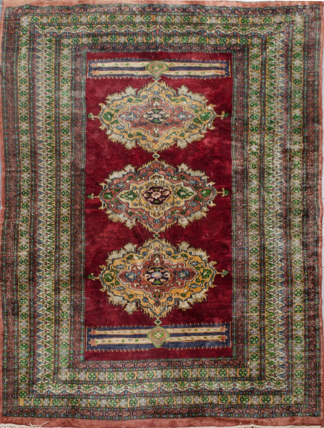 TAPPETO Kashmir, trama e ordito in cotone e vello in lana. Pakistan XX secolo Misure: cm 127 x 192