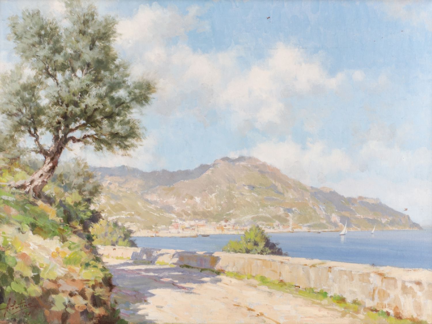 ANTONIO CUTINO (New York 1905 - Palermo 1984) OLIO su tela "paesaggio costiero con trazzera" firmato in basso a sinistra. Datato 1948 Misure: cm 80 x 60
