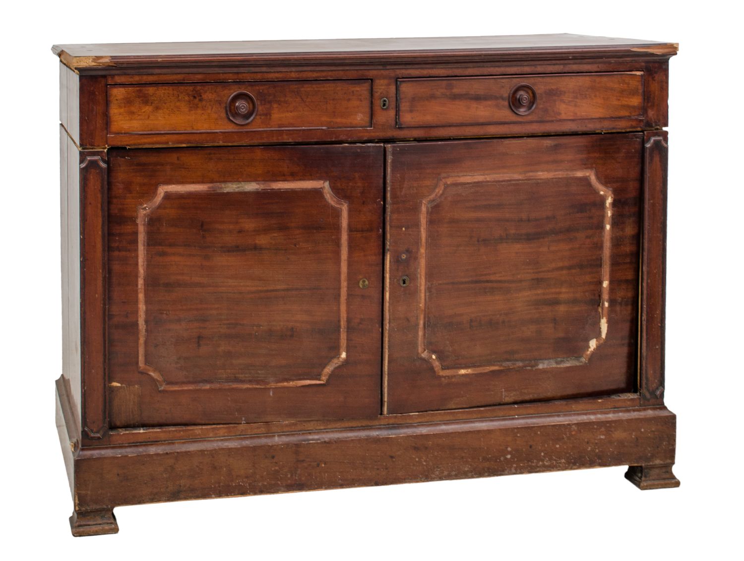 CREDENZA a due ante e due cassetti in mogano. Francia XIX secolo Misure: cm...