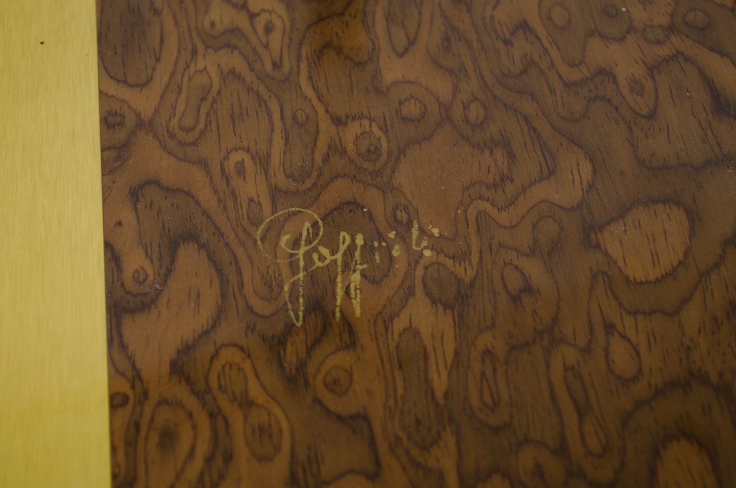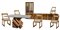 SOGGIORNO in radica composto da TAVOLO, 6 SEDIE, CREDENZA componibile (4 moduli) e VETRINA firmato Poggioli. Anni '70 Misure: varie