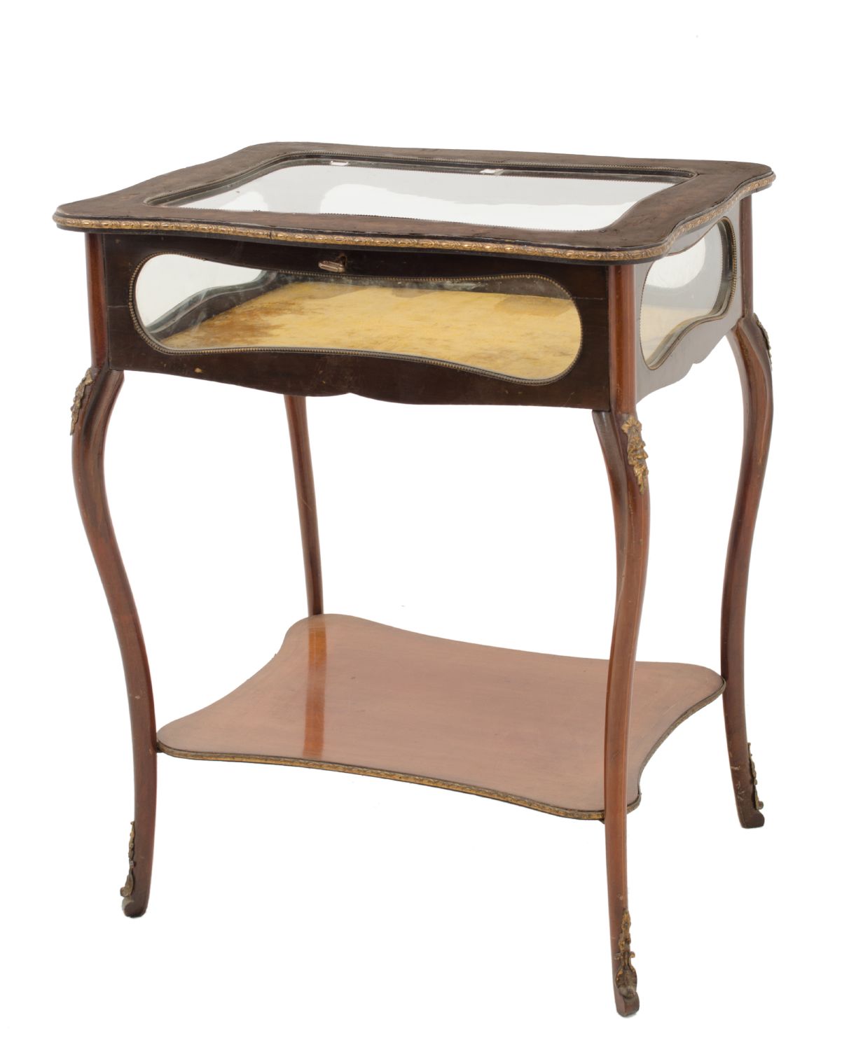 TAVOLINO bacheca in mogano con tarsie. Inghilterra periodo Vittoriano fine...