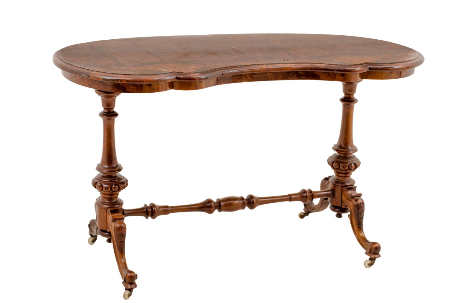 TAVOLINO a fagiolo in noce e radica di noce. Inghilterra XIX secolo Misure: cm 123 x 59x h 74