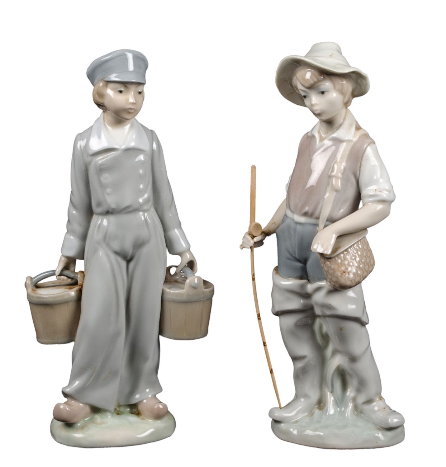 DUE SCULTURE in porcellana Lladro raffiguranti "fanciulli". Spagna XX secolo Misure: h cm 22,5