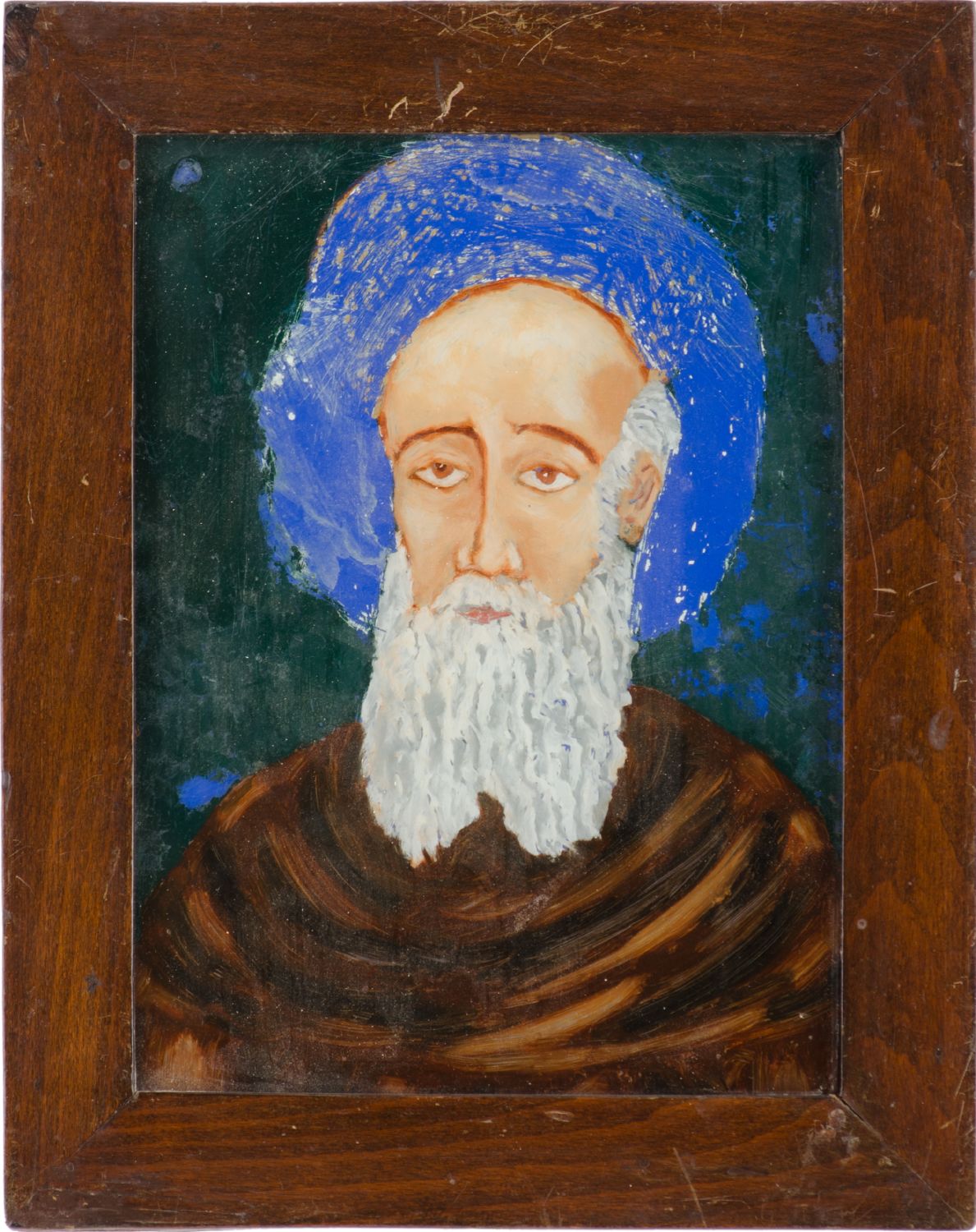 PITTURA su vetro "Santo". Sicilia XX secolo Misure: cm 17 x 23