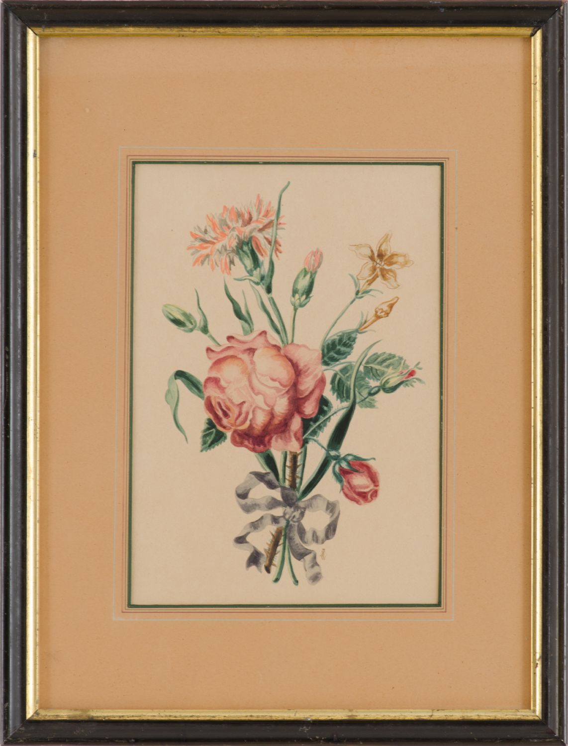 LOTTO composto da due STAMPE colorate "fiori" e da ACQUARELLO "fiori". Primi '900 Misure: varie