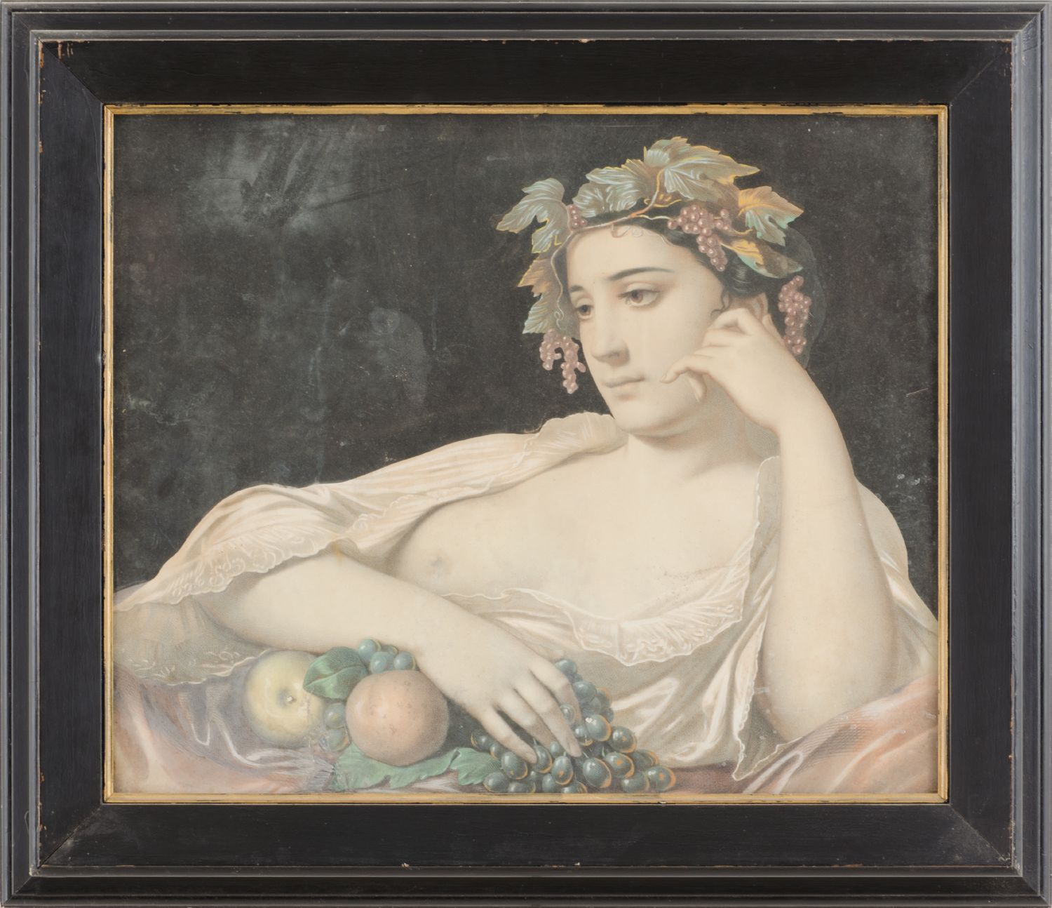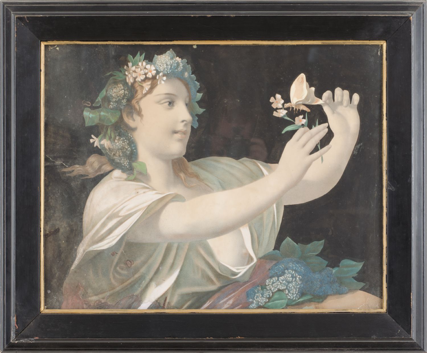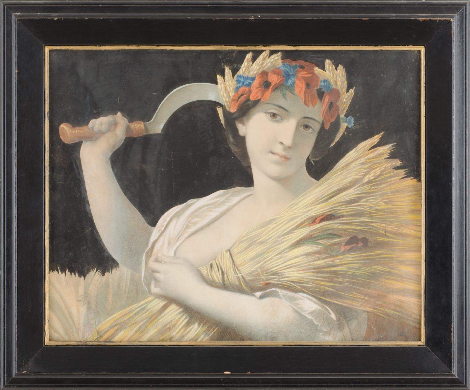 TRE STAMPE acquarellate "le stagioni" entro cornici in legno ebanizzato. Italia XIX secolo Misure: cm 60 x 48